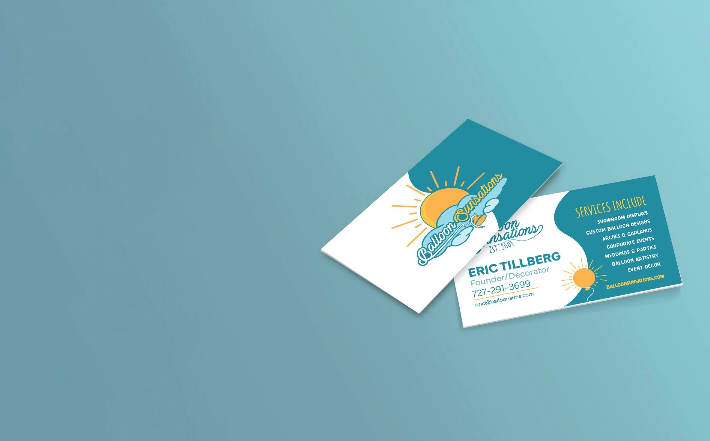 For Balloon Sunsations, the design needed to be as bold and joyful as the brand itself, adapting seamlessly from business cards to signage and beyond. Whether in full color or black and white, large or small, the logo maintains its energy and clarity, making a lasting impression in any setting.